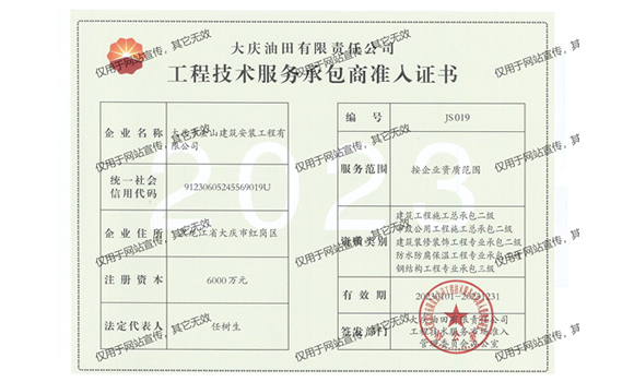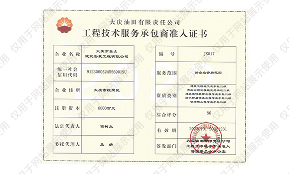 公司簡(jiǎn)介企業(yè)文化榮譽(yù)資質(zhì) 信用評(píng)價(jià) 三體系質(zhì)量 三體系職業(yè) 三體系環(huán)境 金山建筑**生產(chǎn)許可證 建筑二級(jí)資質(zhì) 鋼結(jié)構(gòu)三級(jí) 2023年油田入網(wǎng)證 營(yíng)業(yè)執(zhí)照 工程技術(shù)服務(wù)合格供方證書 職業(yè)健康**管理體系認(rèn)證證書 質(zhì)量管理體系認(rèn)證證書 首頁(yè)上一頁(yè)12下一頁(yè)末頁(yè)